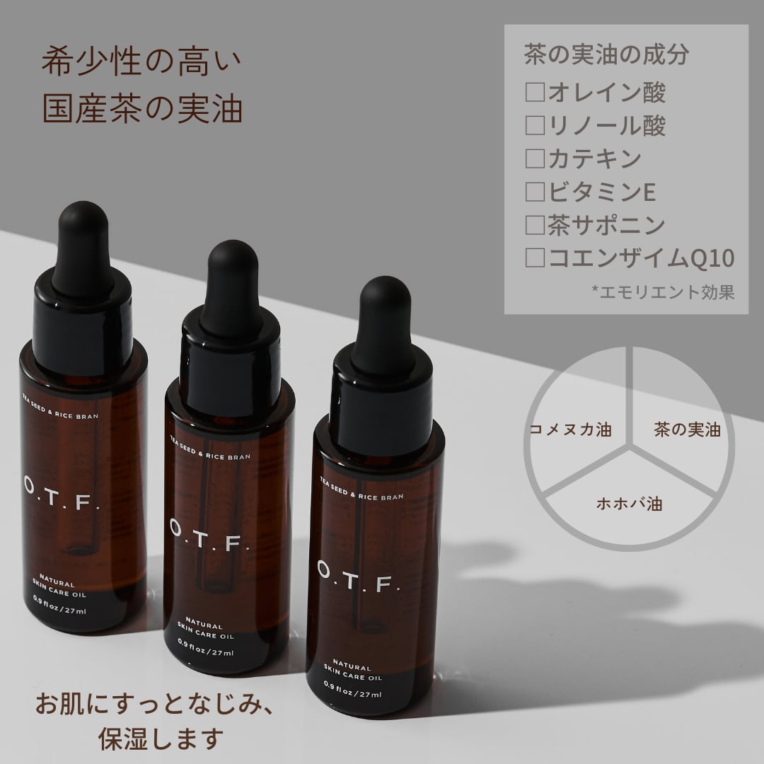茶の実オイルに加えて、コメヌカ油、ホホバ種子油、トコフェロールをブレンド。